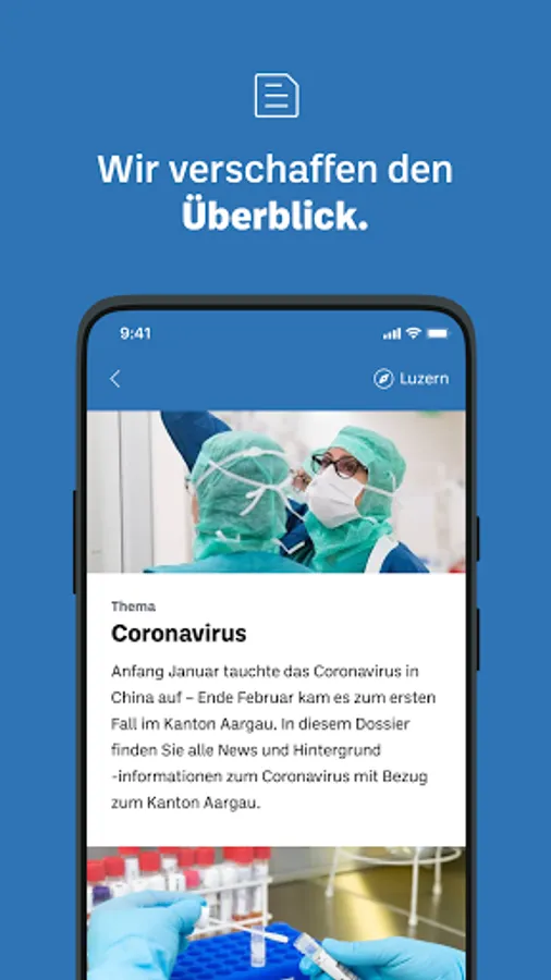 With the "Luzerner Zeitung" news app, you can stay up to date with the latest news from Central Switzerland and your community while you're out and about. In addition to our regional content, we provide you with the most important news on a national and international level every day.