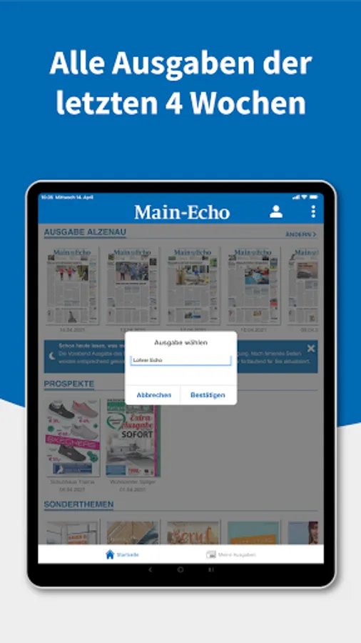 Clear - access to all editions of Main-Echo, Bote vom Untermain, Lohrer Echo and Wertheimer Zeitung as well as Spessart Magazin and other publications