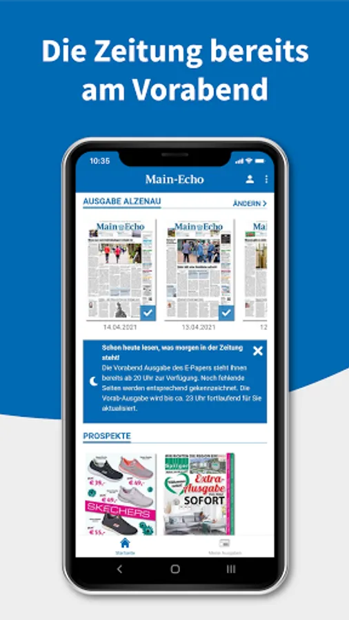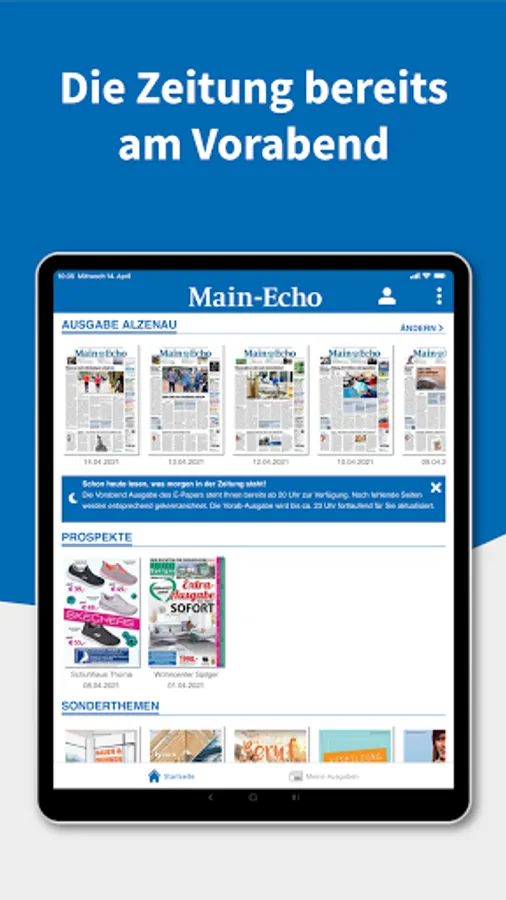 Read at 8 p.m. the evening before what your neighbor will find out tomorrow. With the automatic download, you will receive a push notification as soon as the issue is downloaded and available. If the output is not yet complete, updates are automatically reloaded.