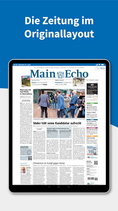 Enjoy the Main-Echo and its home newspapers every day on your tablet or smartphone - how, when and where you want: