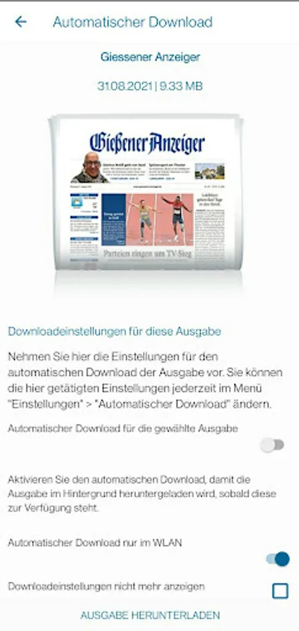 The Gießener Anzeiger stands for journalistic competence and extensive local reporting. With a download function and an optimized text view, the new ePaper app from Gießener Anzeiger offers great reading comfort.