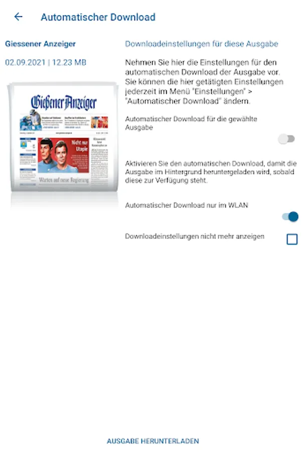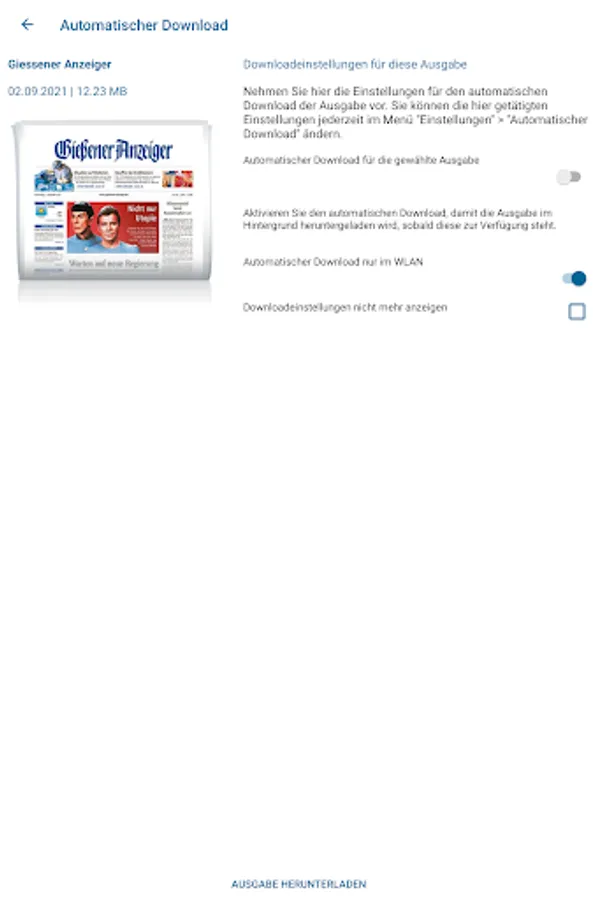 As a subscriber to the daily newspaper, you can also read your respective issue digitally in the ePaper app for a small surcharge of 5.00 €.