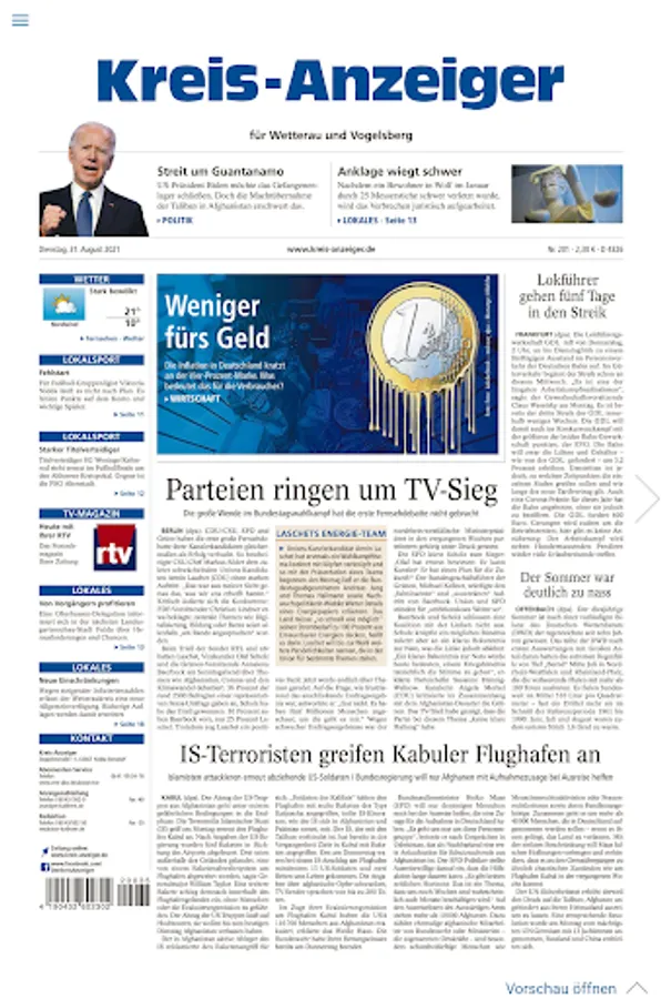 As a subscriber to the daily newspaper, you can also read your respective issue digitally in the ePaper app for a small surcharge of 5.00 €.