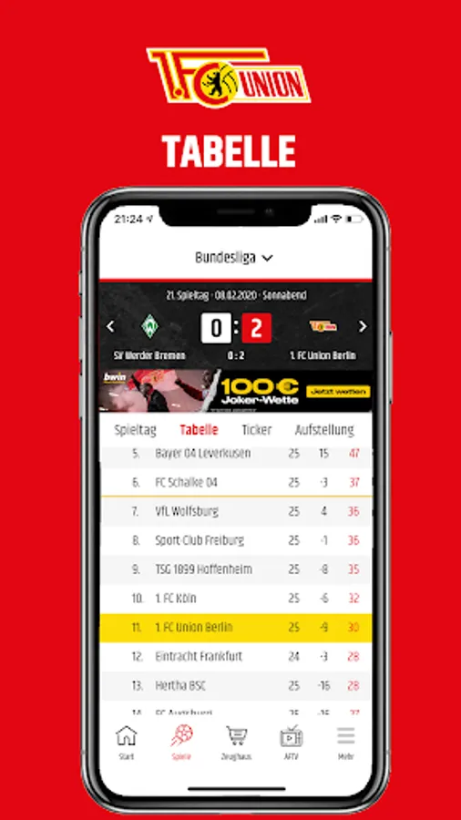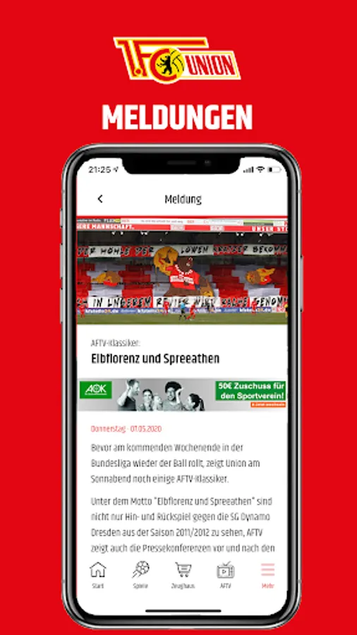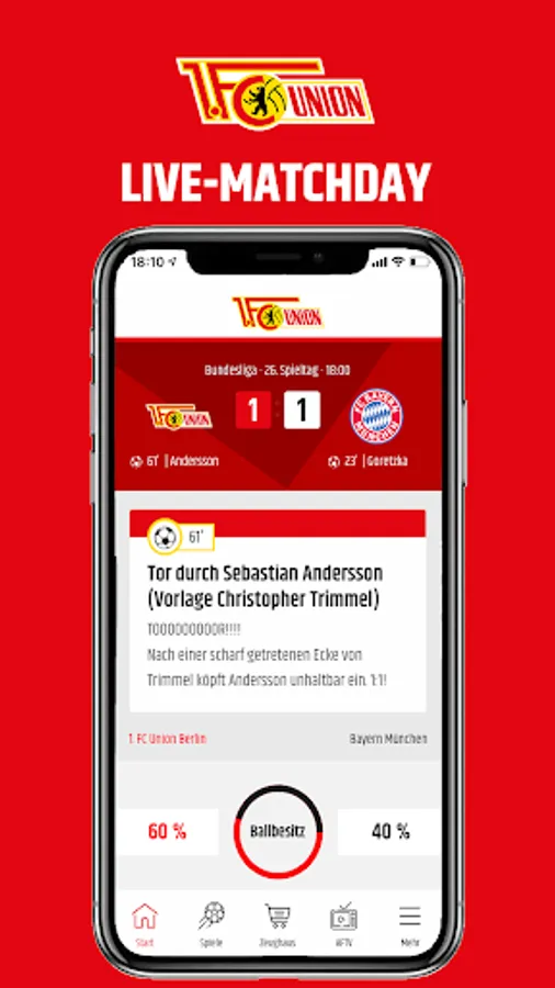 Live match day: If you can't be in the stadium, you can still experience the game of the Union professionals. The start page of the app changes 30 minutes before the start of the game. You see the preliminary report, then the line-up, of course the ticker and live statistics - immediately when you open the app. When the game is over, the start screen looks the same as before.