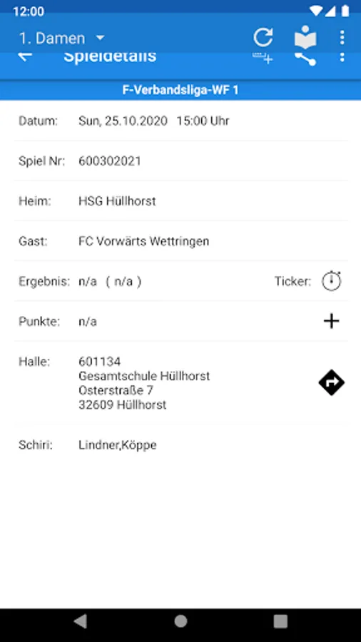 - Home match calendar to display the next home matches of all FC Vorwärts Wettringen teams