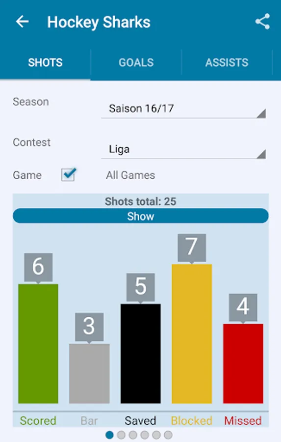 Each stat can be filtered by season, league or individual players. Stats can be analyzed during games and be used as a foundation of your next speech inside the locker room. Other than that analysis can be exported and shared by email or social media.