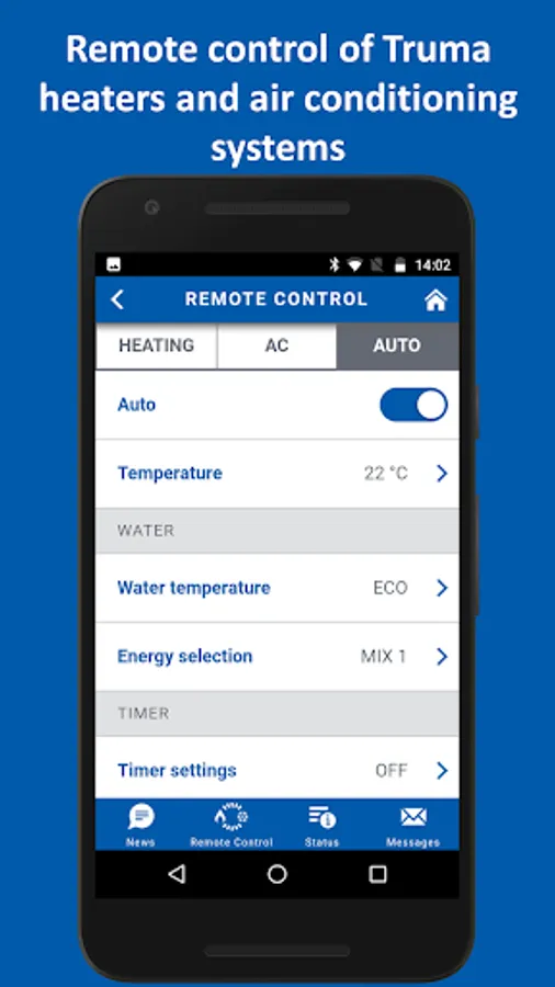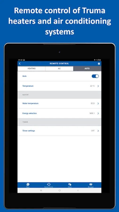 Use the remote control feature of the Truma App to conveniently and easily control your Truma heaters and air conditioning systems and also to check the current appliance and vehicle status while you’re out and about. Camping becomes easier, more comfortable and safer.