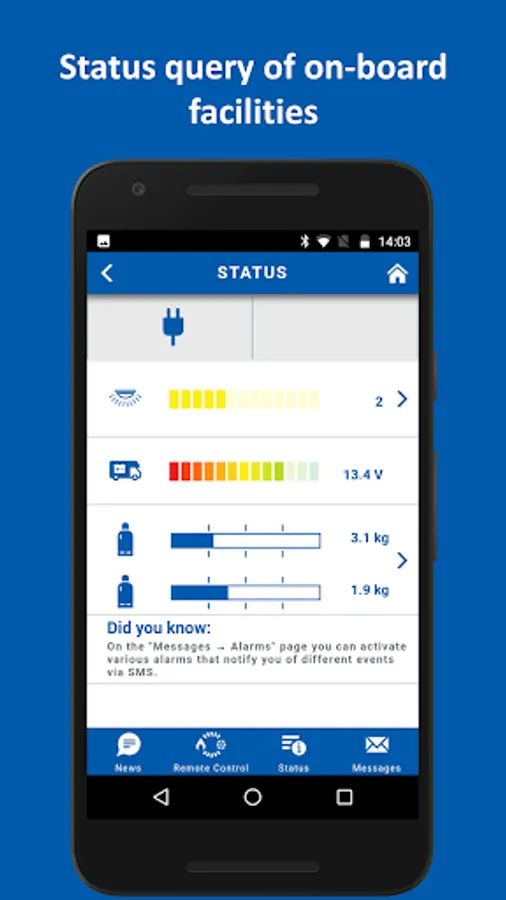 - Vehicle status and Truma/Alde appliances can be displayed and queried