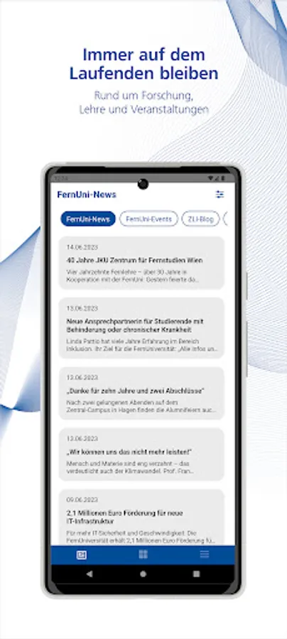 Important services from everyday study at the FernUniversität in Hagen bundled on the smartphone? This is possible with the FernUni app. With its intuitive design and clear user interface, it offers you easy access to important information and tools.