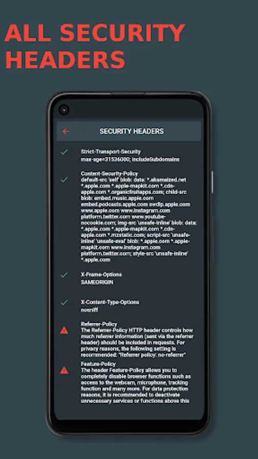 The Header-Checker shows you details about the existing http-headers and gives hints about missing security relevant http-headers.