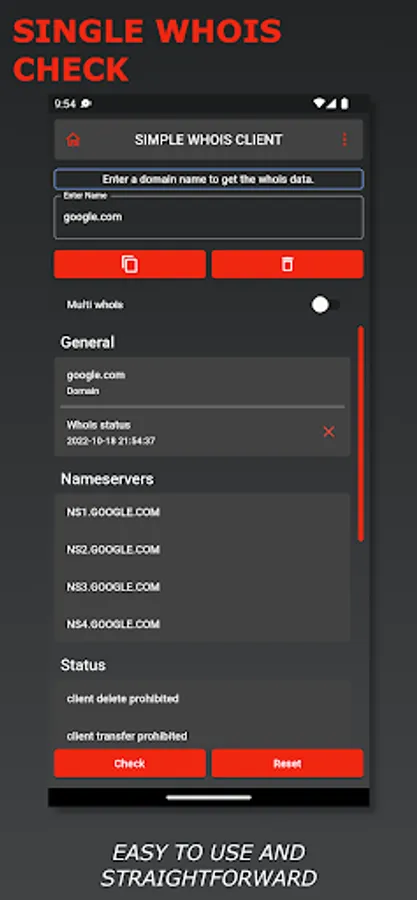 Simple Whois Client offers you an easy way to check the Whois status of one or more domains.