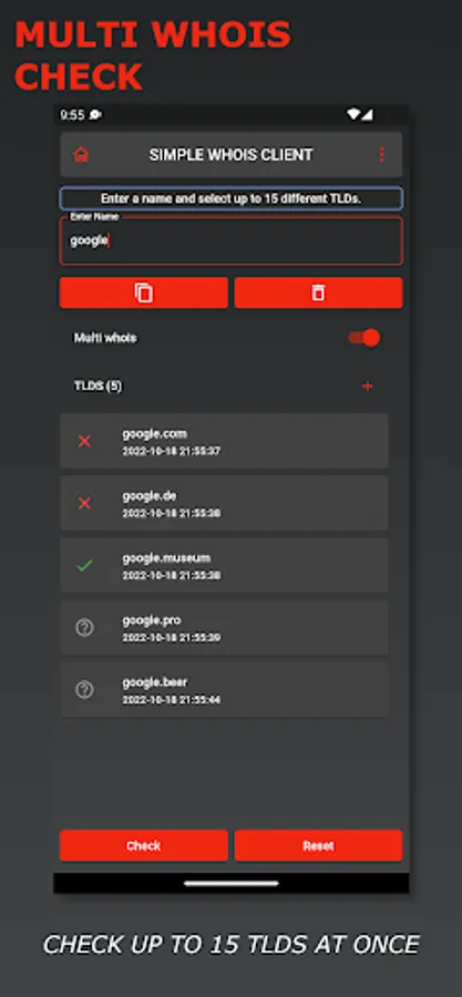 For 99% of all TLDs the RDAP protocol (successor of Whois) is used. Since many CCTLDs do not currently support RDAP, they are not supported or the old Whois protocol is used. Multi Whois Check requires mandatory RDAP for a TLD!