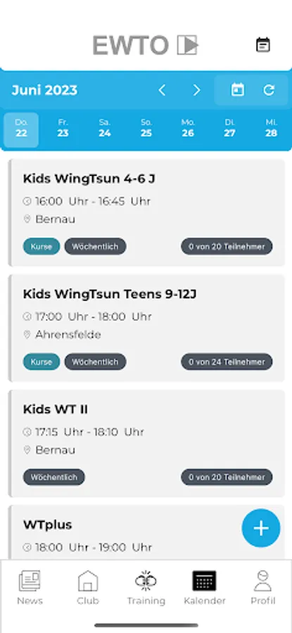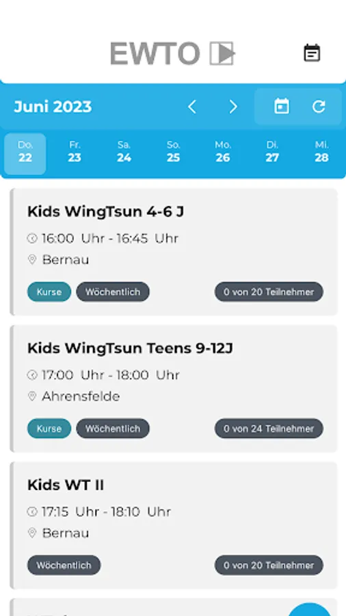For a clear overview of the entire EWTO Self-Defense School club and course offer, you can use the calendar function to find the most suitable course or event for you. With the additional insight into course content, trainers or number of participants, you can participate even more actively in the club program.