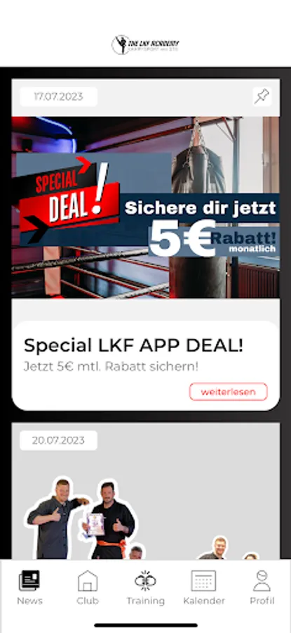 You will receive the most important news and updates from your LKF ACADEMY as easily and directly as possible. Special opening hours, new coaches, technology videos of the week or limited club offers - you are always up to date. In addition, the news items can be quickly and easily forwarded to friends and acquaintances directly from the app.