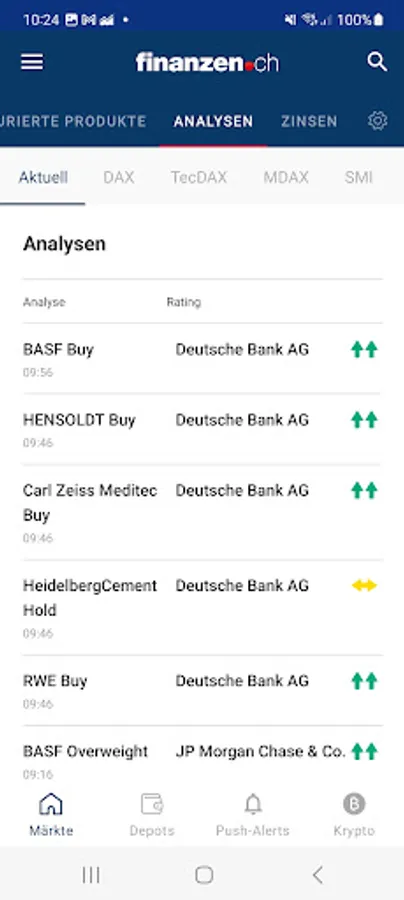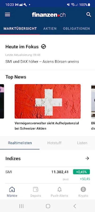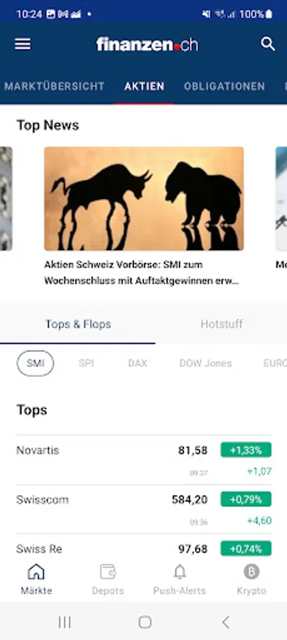 finanzen.ch is THE stock exchange app for Swiss investors. The focus is on Swiss stocks and indices, but of course there is also all the important news and prices on foreign stocks, funds, certificates, currencies and commodities. The real-time prices for many stocks and also real-time indications for the most important indices are of particular interest to active investors.