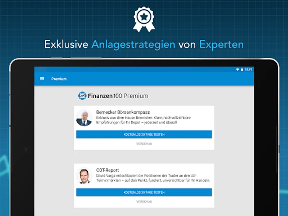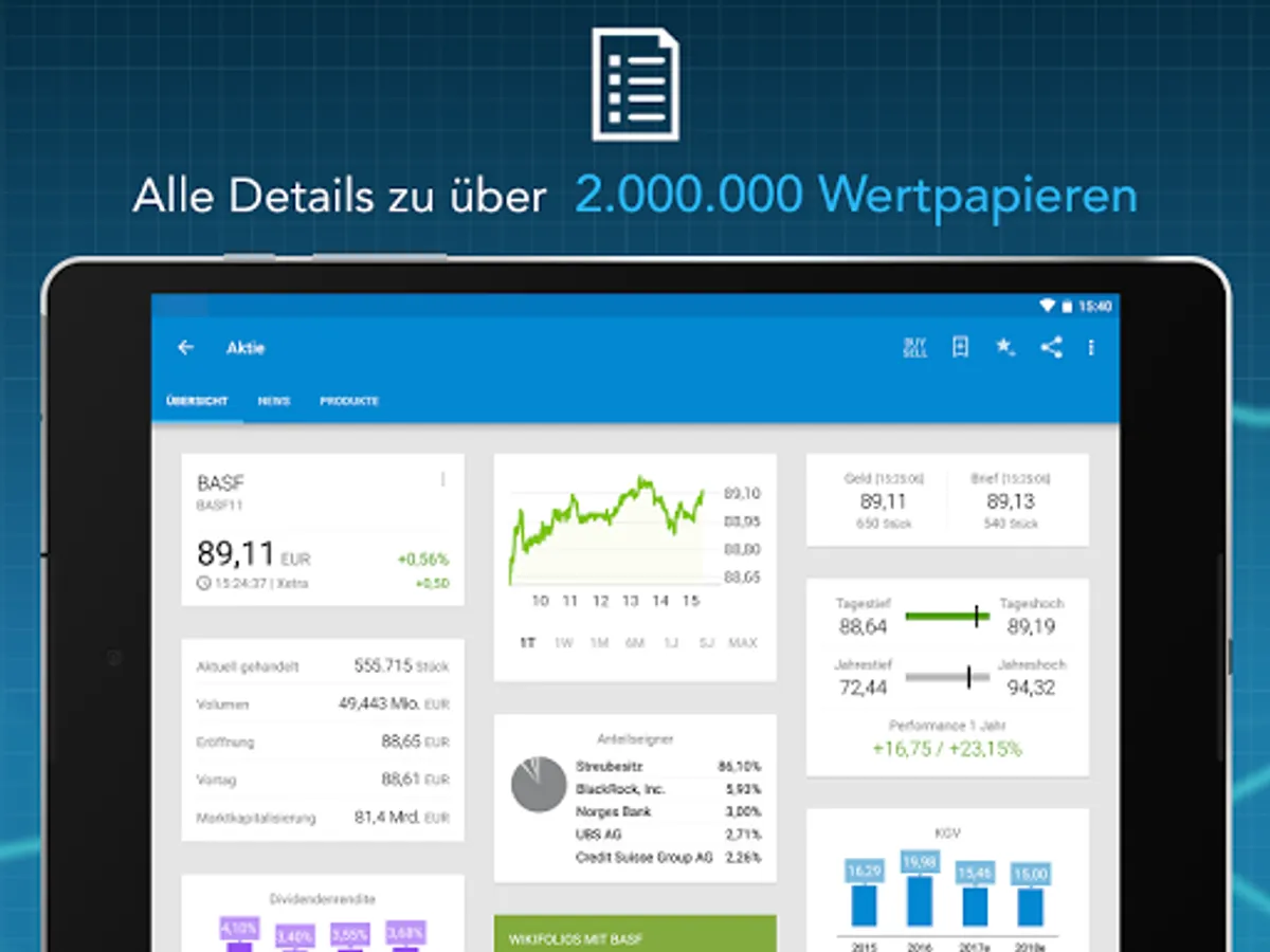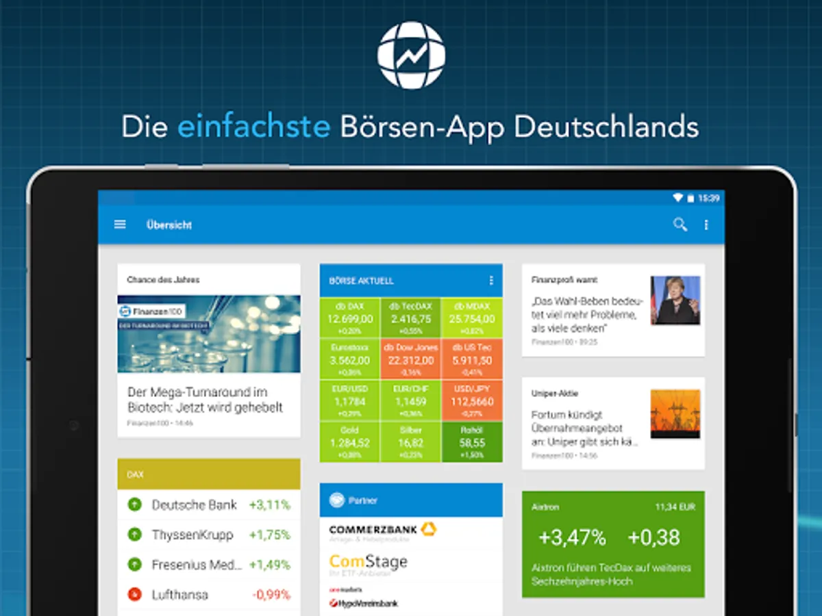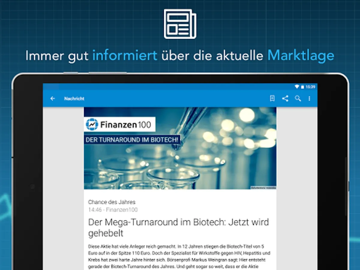 Finanzen100.de, the most innovative financial portal in the German-speaking region, now offers a unique combination of stock market news, share prices, securities data and charts from the world of finance on the go with its free Android app - for over 2,000,000 securities.