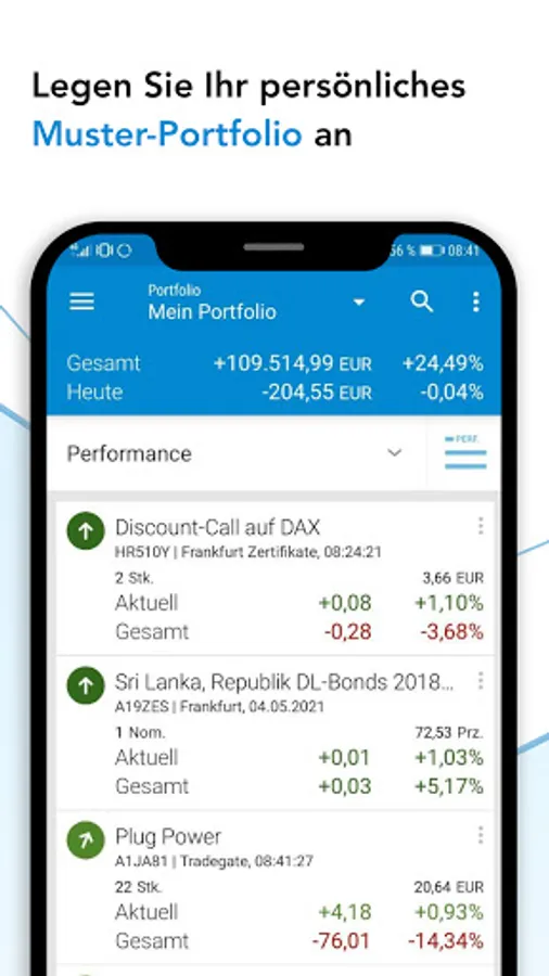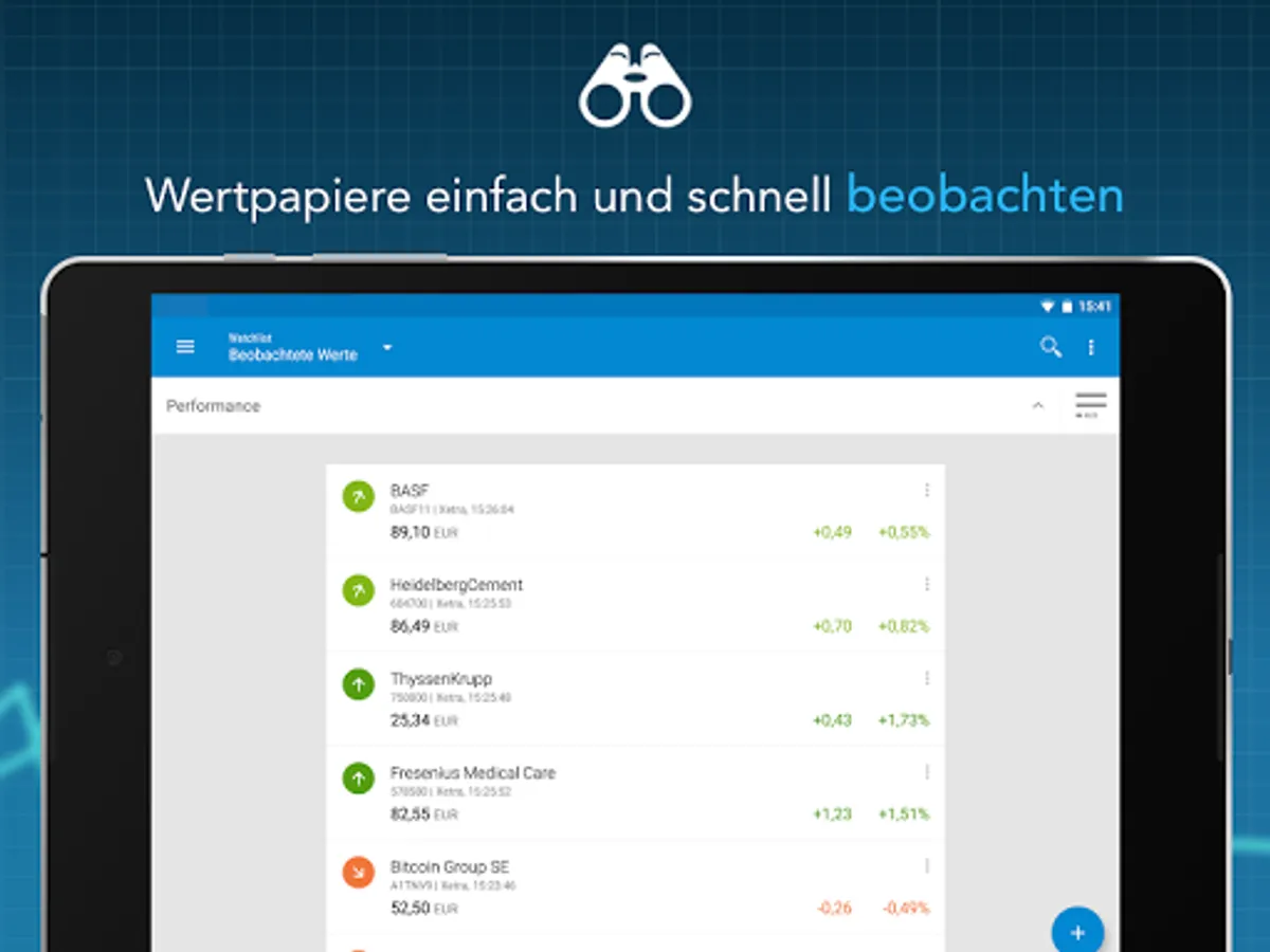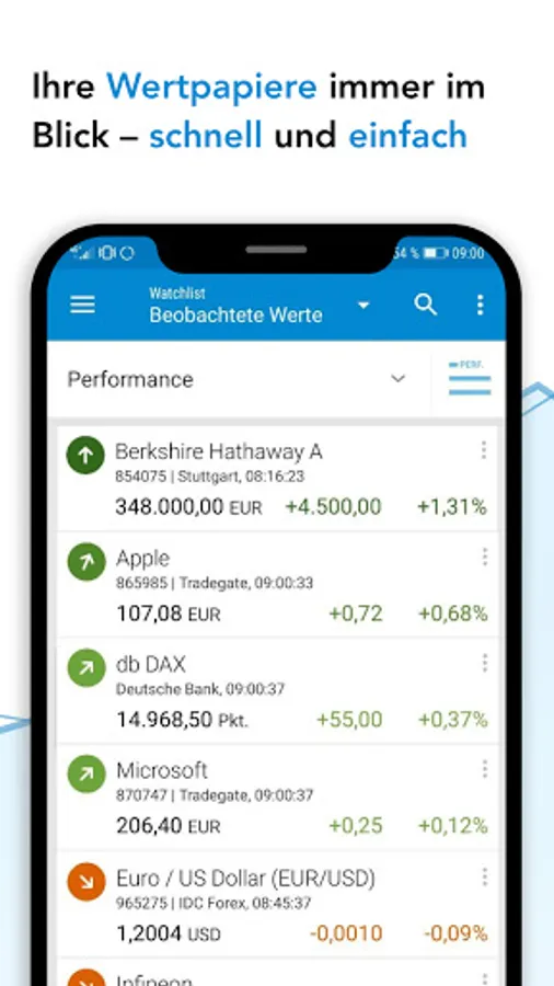 Securities quickly and easily at a glance in the watch list or in the portfolio.