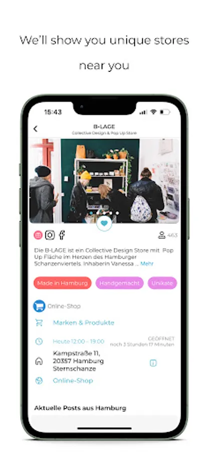 Discover unique stores in your favourite city – our app provides you with insider shopping tips only locals would know. Search for specific products and brands around you and be inspired by the newsfeed that shows offers and new arrivals of stores nearby. #shopsmall #buylocal