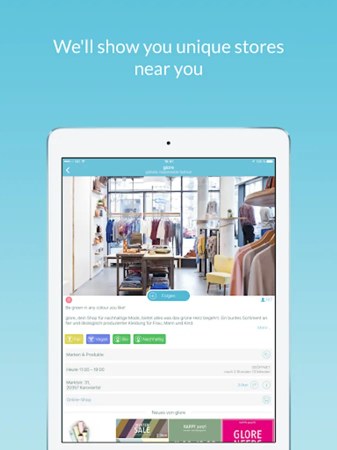 Get at-a-glance information where to find vegan, handmade, sustainable, fairly produced, organic or unique products. Don't just buy anything – buy something special.