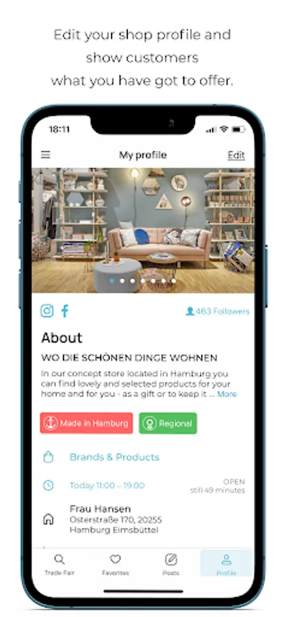 Easily create and edit your Findeling shop profile and keep your regular customers and potential new ones up to date.