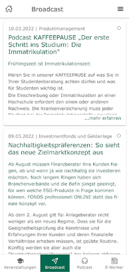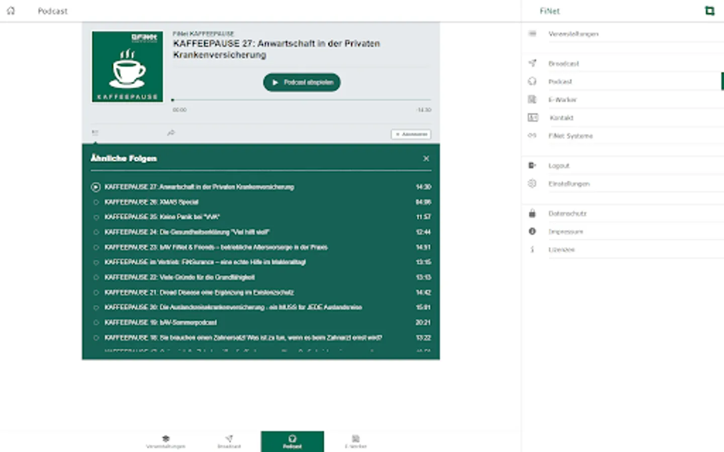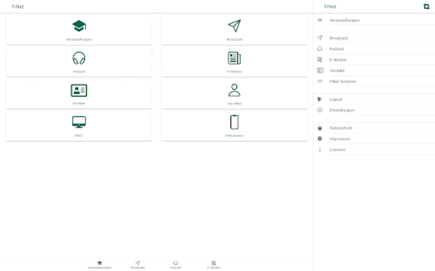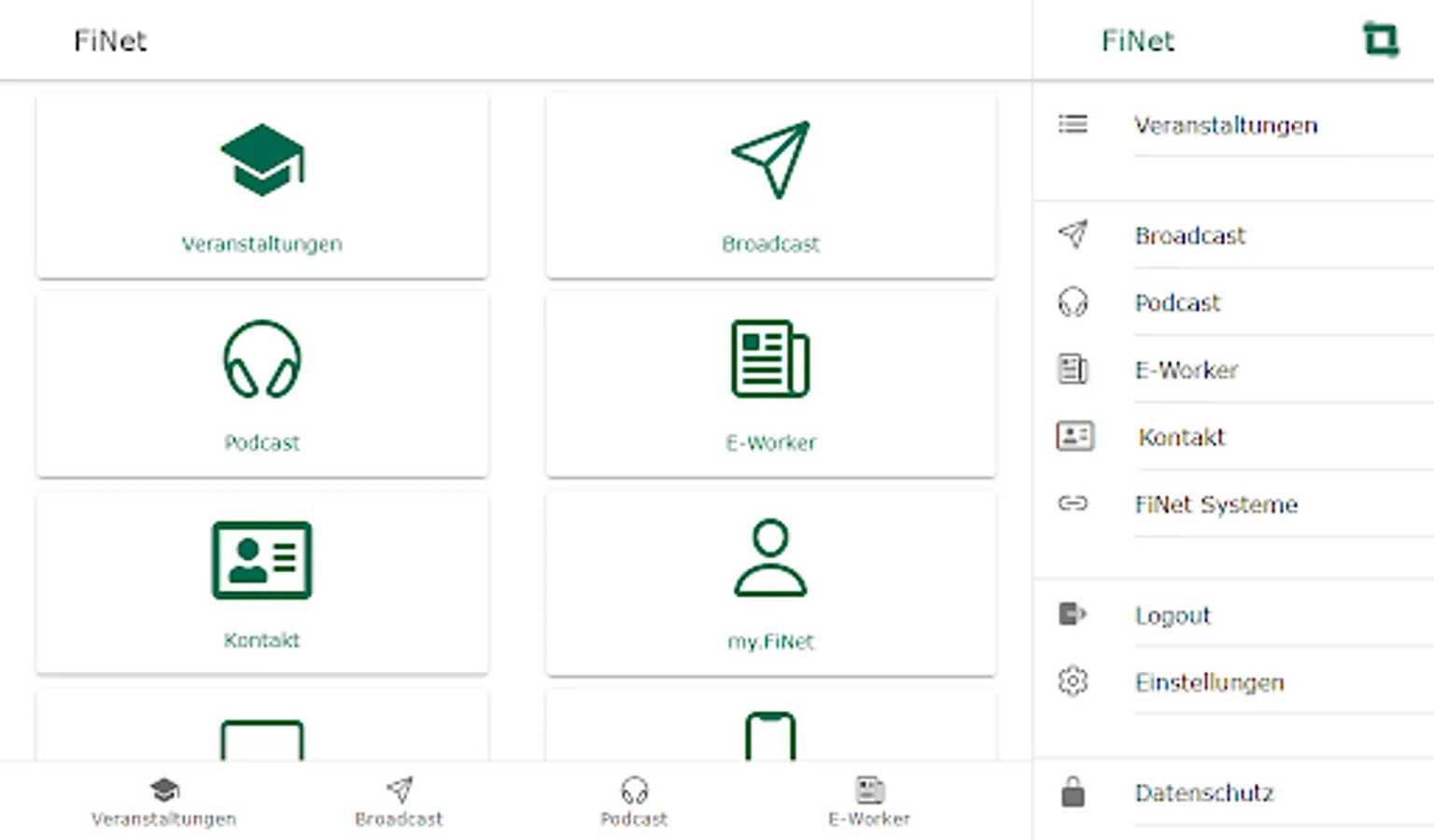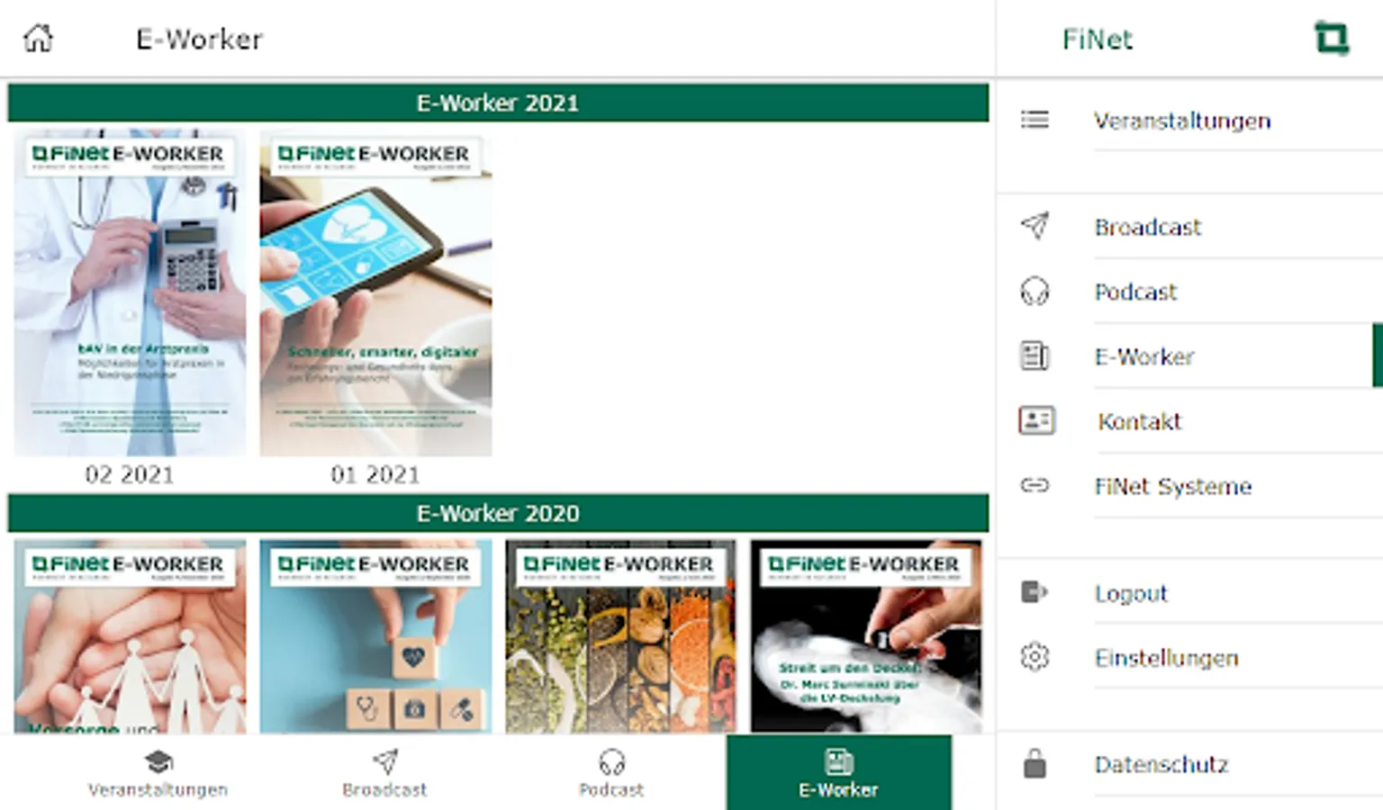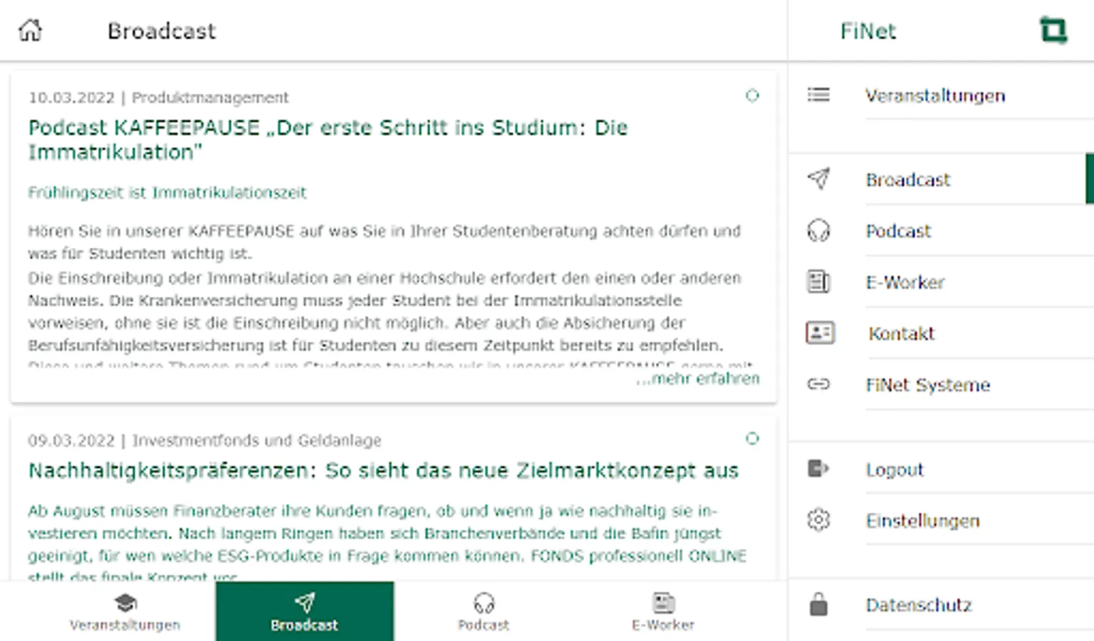 With the FiNet app, you always have the services of the FiNet Group at hand: book events directly, call up our podcast "COFFEE BREAK" in the app, read the e-paper FiNet E-Worker and use the broadcast function to miss out never our most important news.