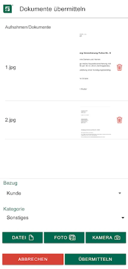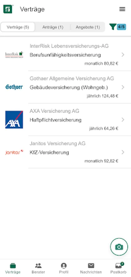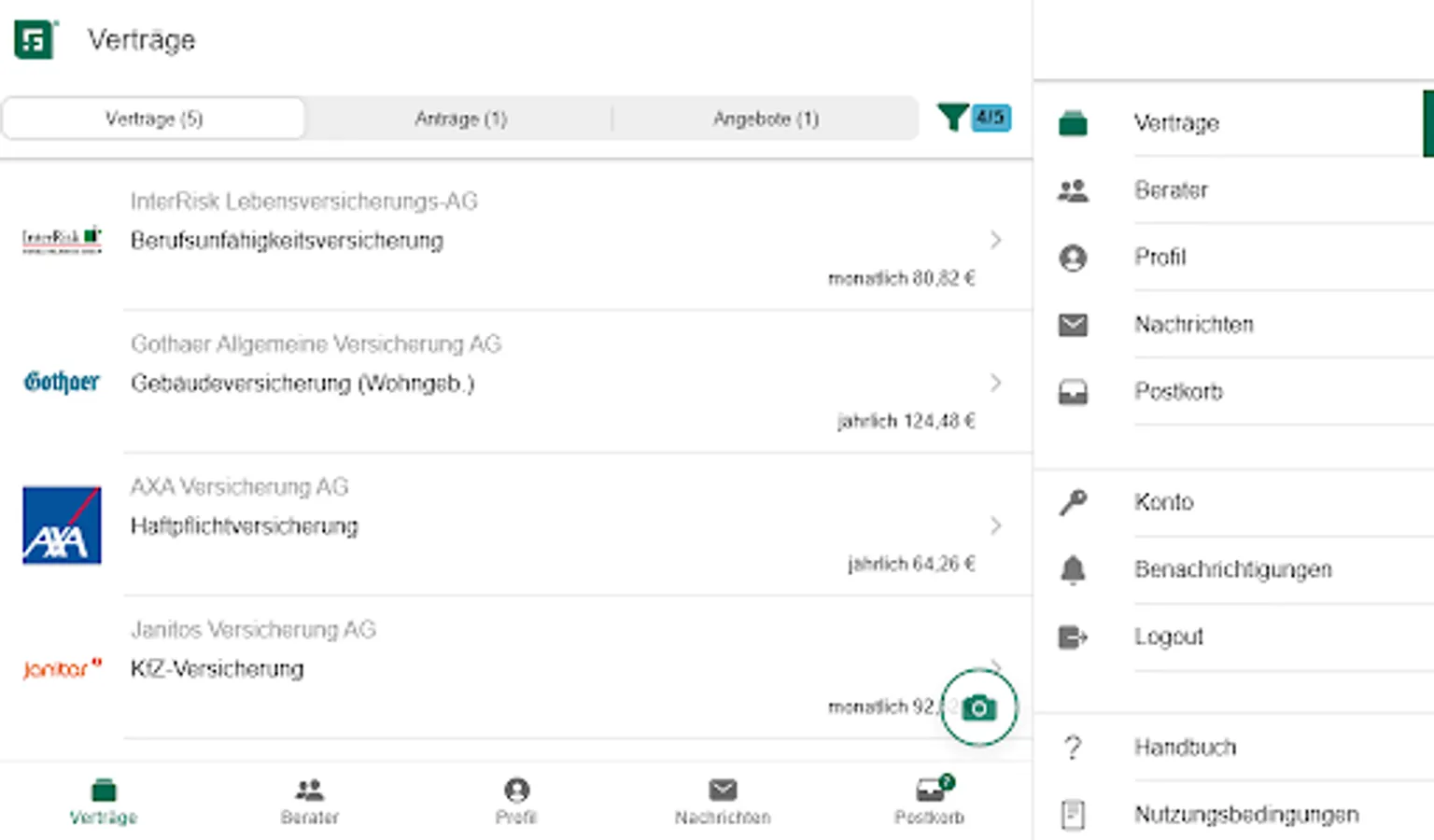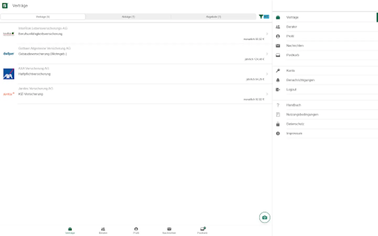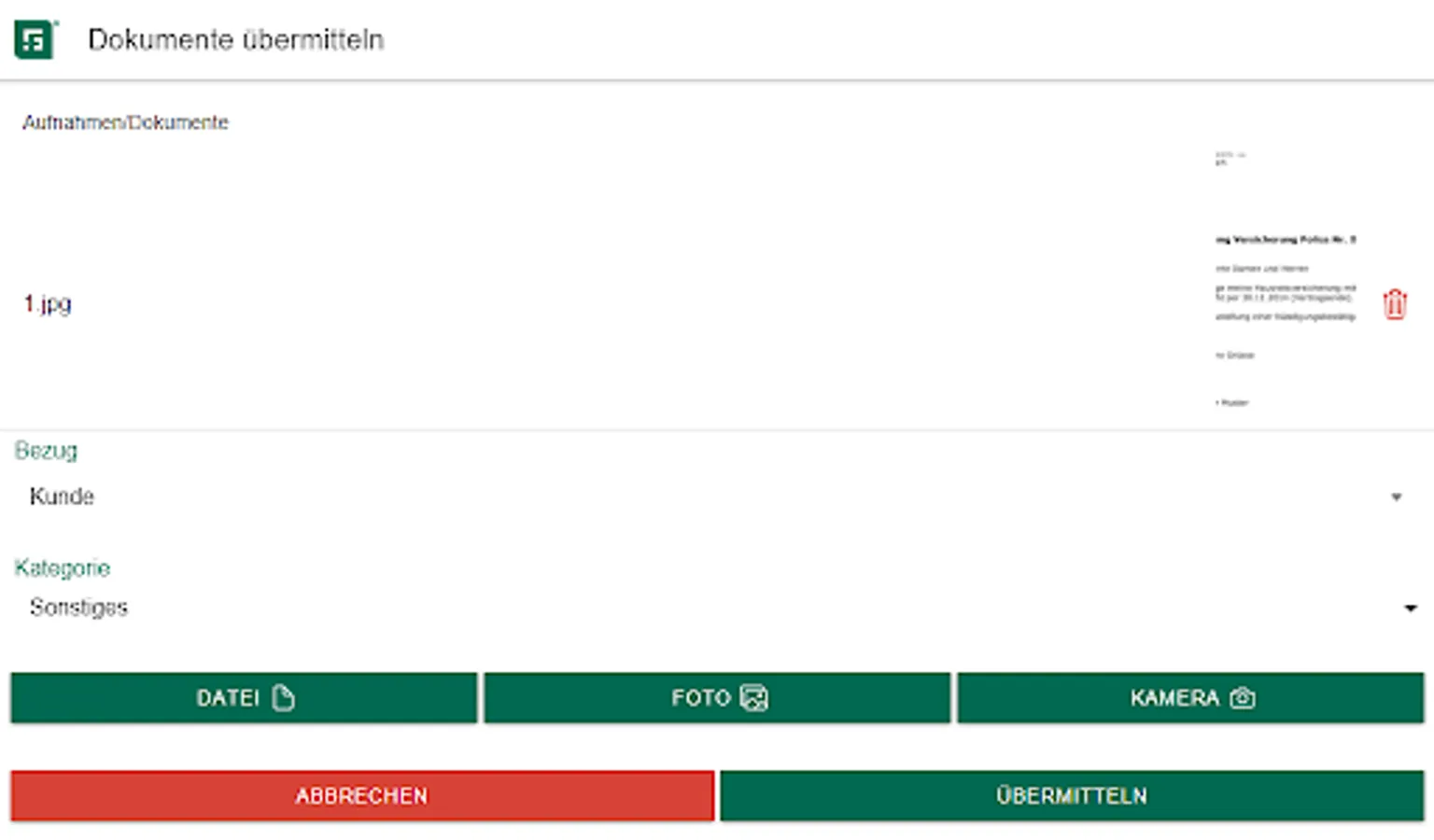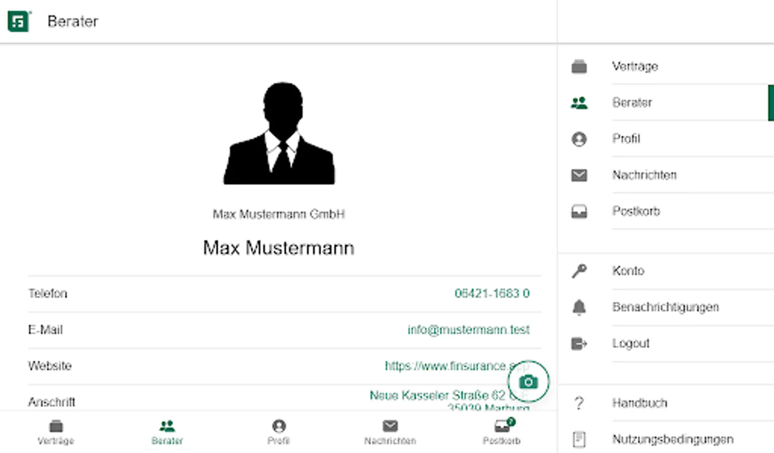With FiNSurance you always have your most important contract data with you. You have the option of conveniently updating your data on the go and making changes at short notice. This means that you often do not have to use the phone or write an email, and should you need assistance, you can contact your broker directly using the useful chat function. Your documents are available in the app as a handy PDF file and you can simply scan additional documents and add them to your contract documents.