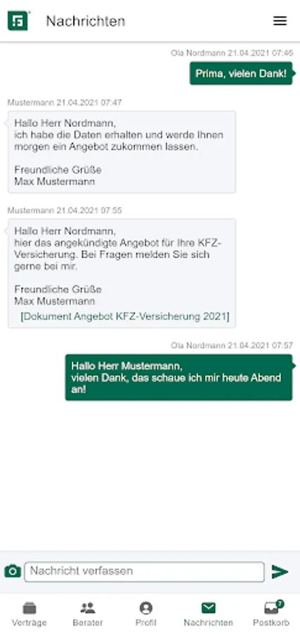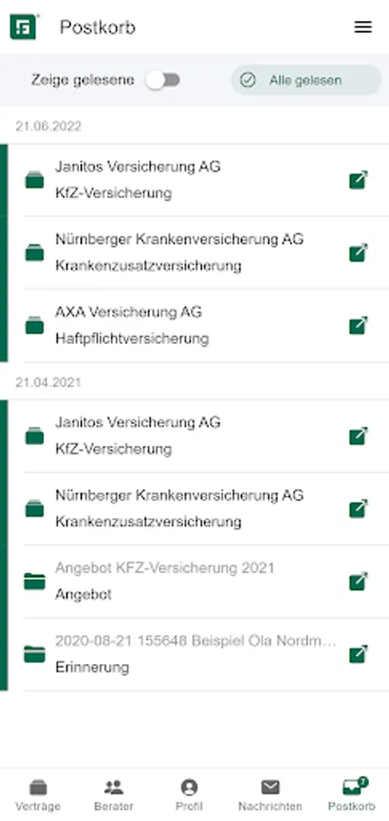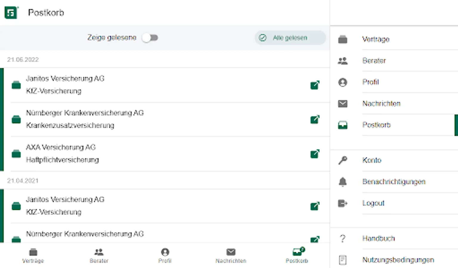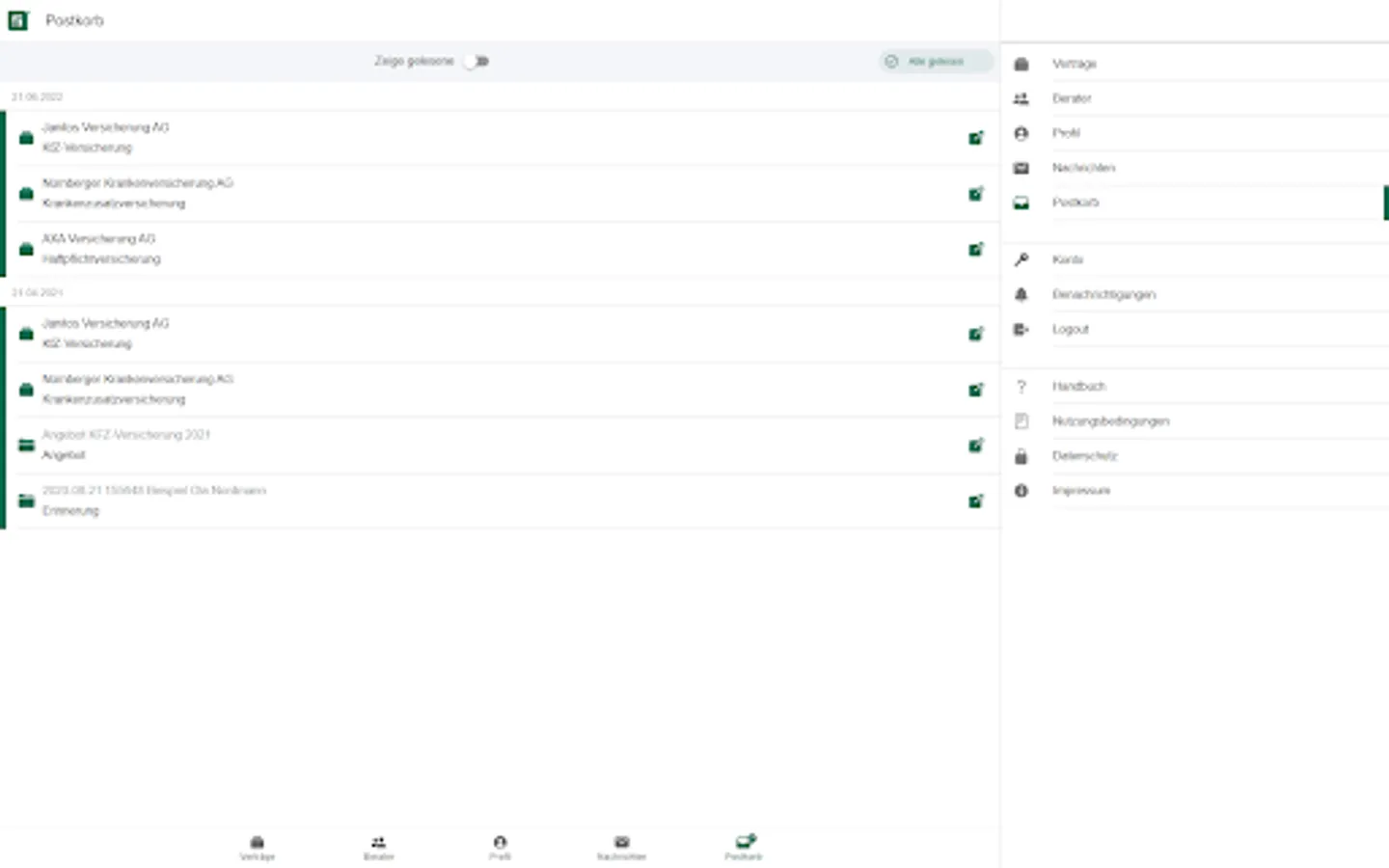 • All new information is clearly provided in the mail basket. The information includes contracts, documents, damage and all relevant messages.