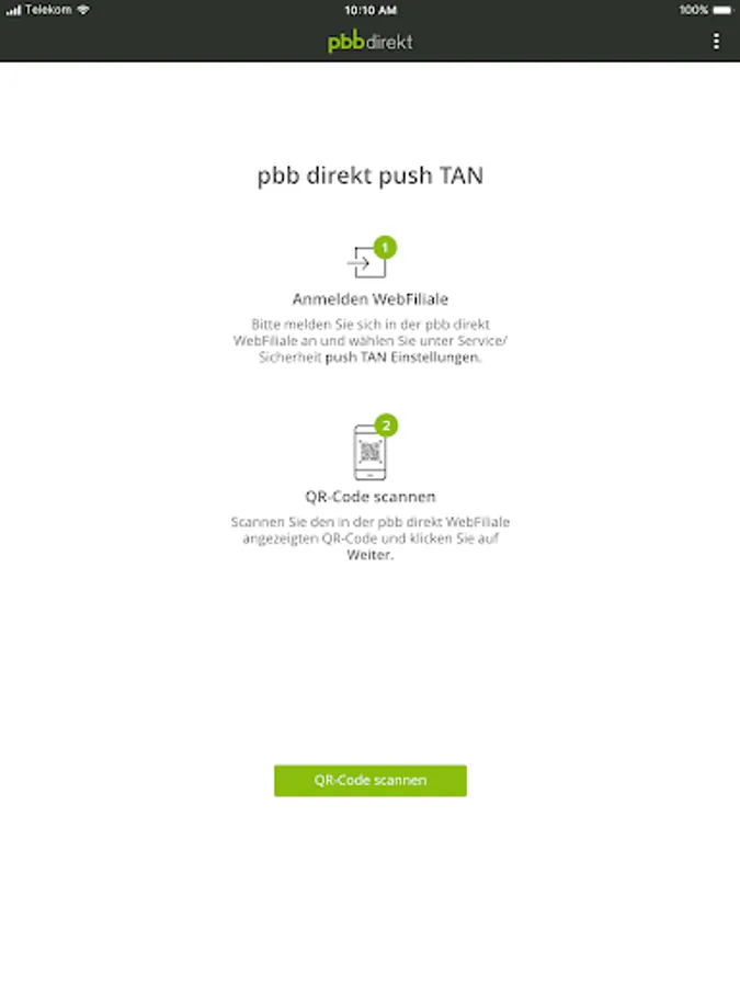 With the new free pbb directly push TAN app you get a comfortable and safe TAN procedure for your smartphone or tablet. The necessary for your banking TANs you receive you order directly to your device. This makes the smartphone or tablet to the TAN generator. In addition to conventional TAN procedure - the determination of the TAN on the basis of iTAN card - you can rely on this innovative technology.