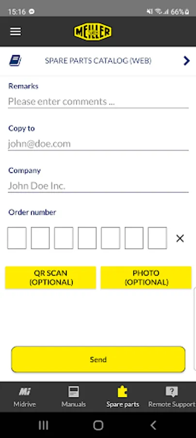 The new app provides support with regard to service and spare parts logistics. All door data is recorded by scanning the QR code via the search field of the camera. Afterwards, a photo of the respective part and a corresponding note by the user can be created. The appropriate request can then be sent to Meiller.