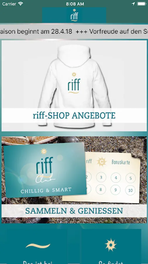 This app is your direct and personal line to the reef. So you'll be informed no riff-Event miss, always opening times, the weather on the spot and cool riff offerings. Other advantages for you: Hot news via push messages. Link to the new reef shop with magical "riff Buzzer Moments" fashion hits and holiday memories. And built-reef bonus card you will receive great benefits for your riff-fidelity.
