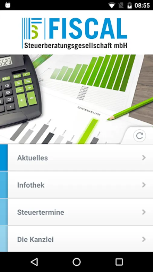 This free app as a service of our tax consultancy firm provides you with monthly tax specialist information, keeps overdue tax payment dates up to date and provides helpful answers to selected tax issues for any time reference.