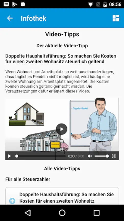 Also on selected tax issues, the app keeps ready information: What is important in running a logbook? What are the possibilities of tax-privileged content employee benefits are there? For these and other topics, the app provides you with the answers.
