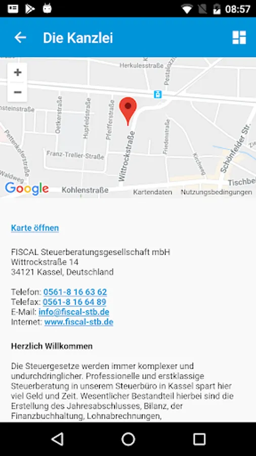 Of course you have this application always have a direct line to the office. All contact details incl. Convenient Directions are available therein. If you phone number or email address times do not have on hand, simply refer to the app.