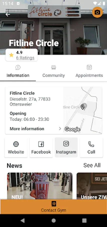- Each studio with its own profile: Own media gallery, address, opening times, service overview, course schedules and course details