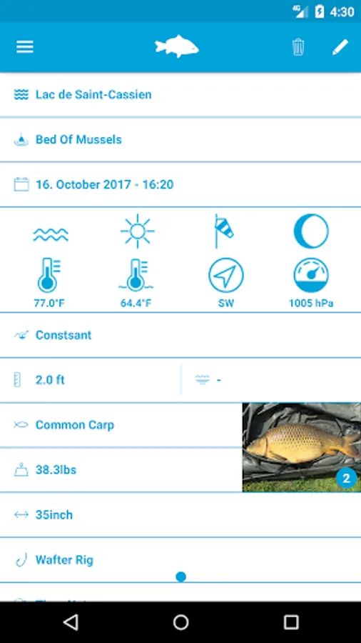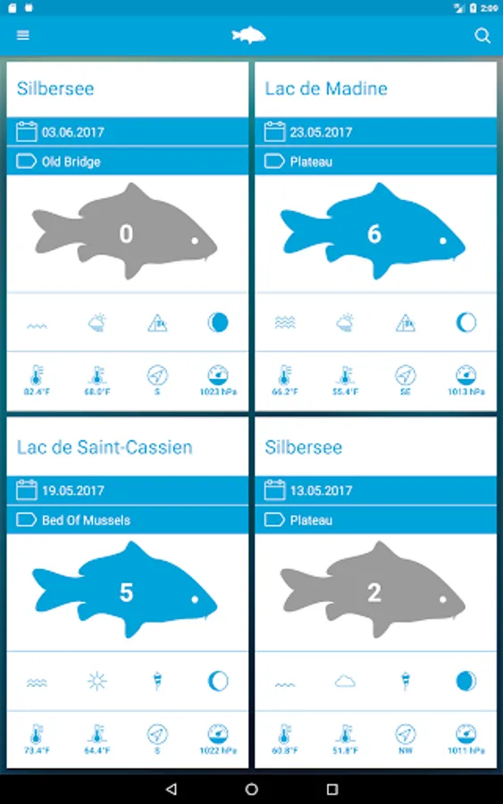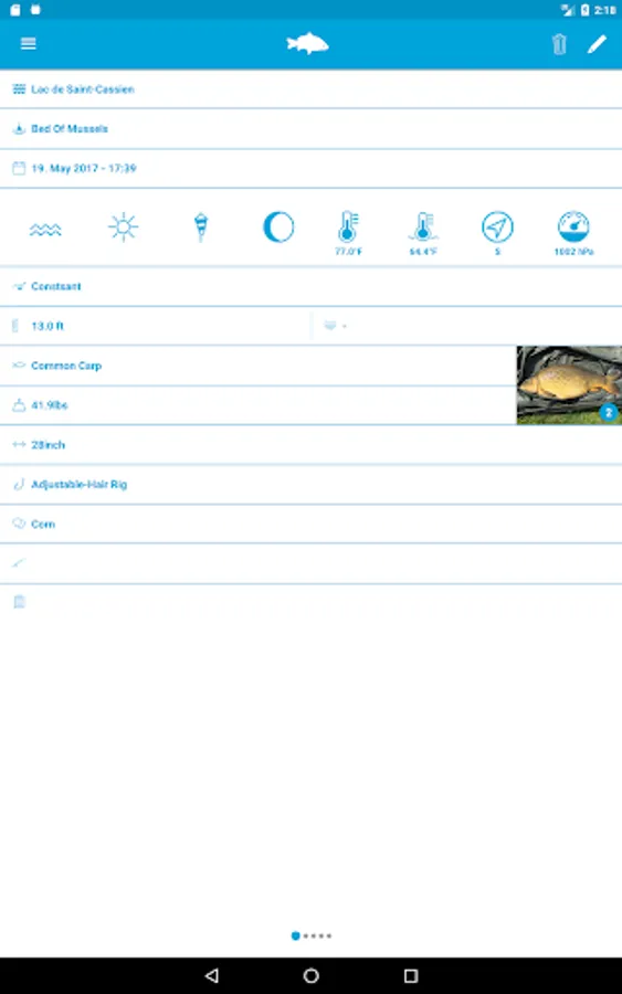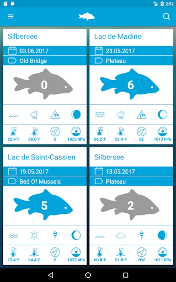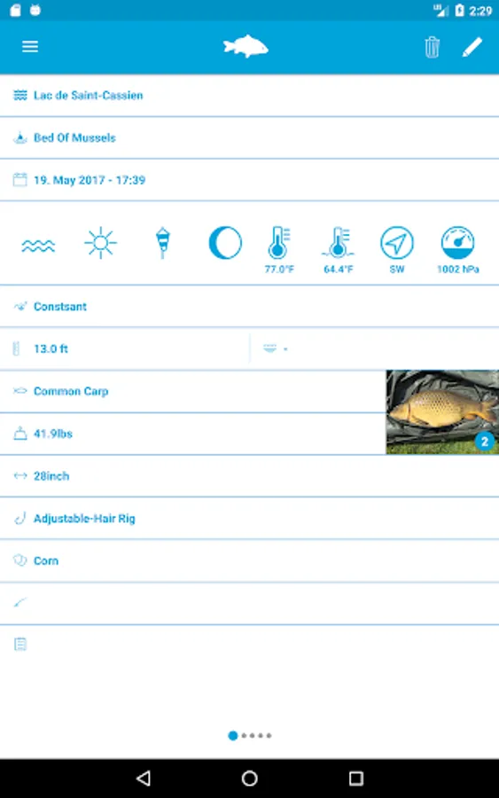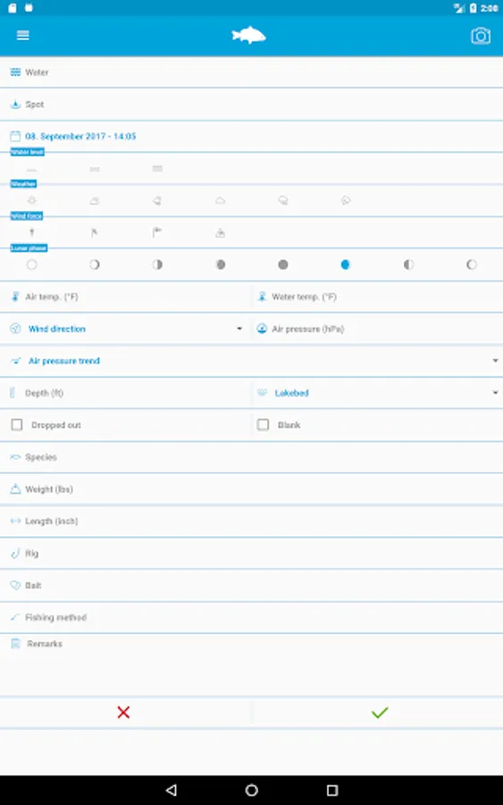 Especially designed for fishing, this catch log app allows you to save all important information about your catches and bites on your smartphone. Many parameters can be entered via one tap only without having to write a lot. In addition you can add pictures of your caught fishes to every input.