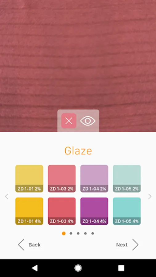 The app allows you to preview the effect of a glaze. In addition, you can use the selected colours to easily create a recipe for the composition of the required colour concentrates. You can share the picture of the coloured workpiece with customers, colleagues or dealers.