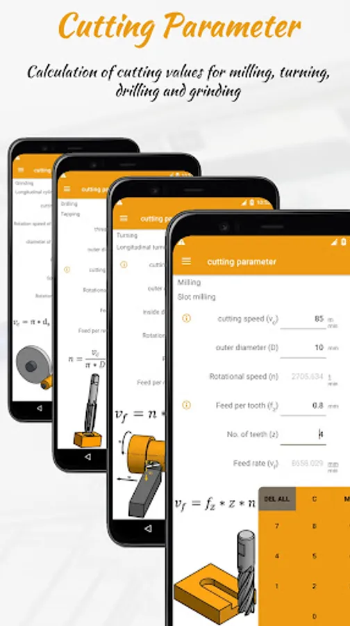 One of the app's standout features is the integrated Metal Table Book, offering a comprehensive overview of critical material parameters and indispensable formulas for all your metalworking needs. Whether you're involved in CNC or conventional manufacturing, Engineering Calculator caters to both, making it a versatile and essential companion.