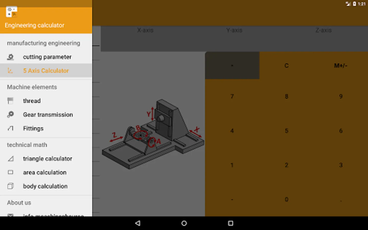 Ideal for those in apprenticeship training for mechanical engineering, Engineering Calculator covers a wide range of essential topics. From calculating cutting values and utilizing CNC tools like 5-axis rotation coordinates for horizontal milling centers, to diving deep into machine elements such as straight and helical gears, ISO standard threads, metric fine threads, metric tapered threads, Withworth and pipe threads, and various fits – the app has got you covered.