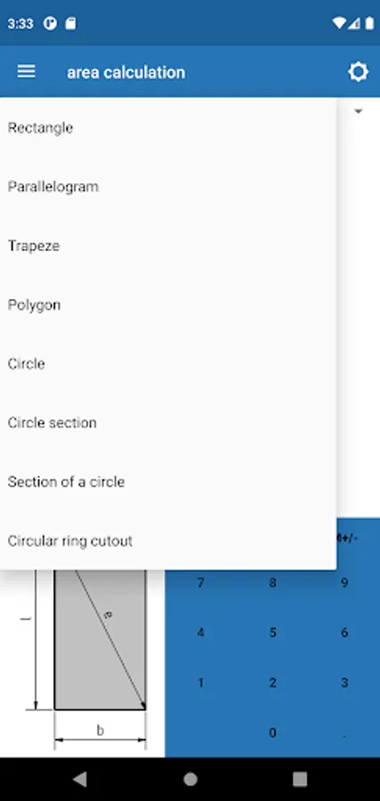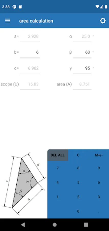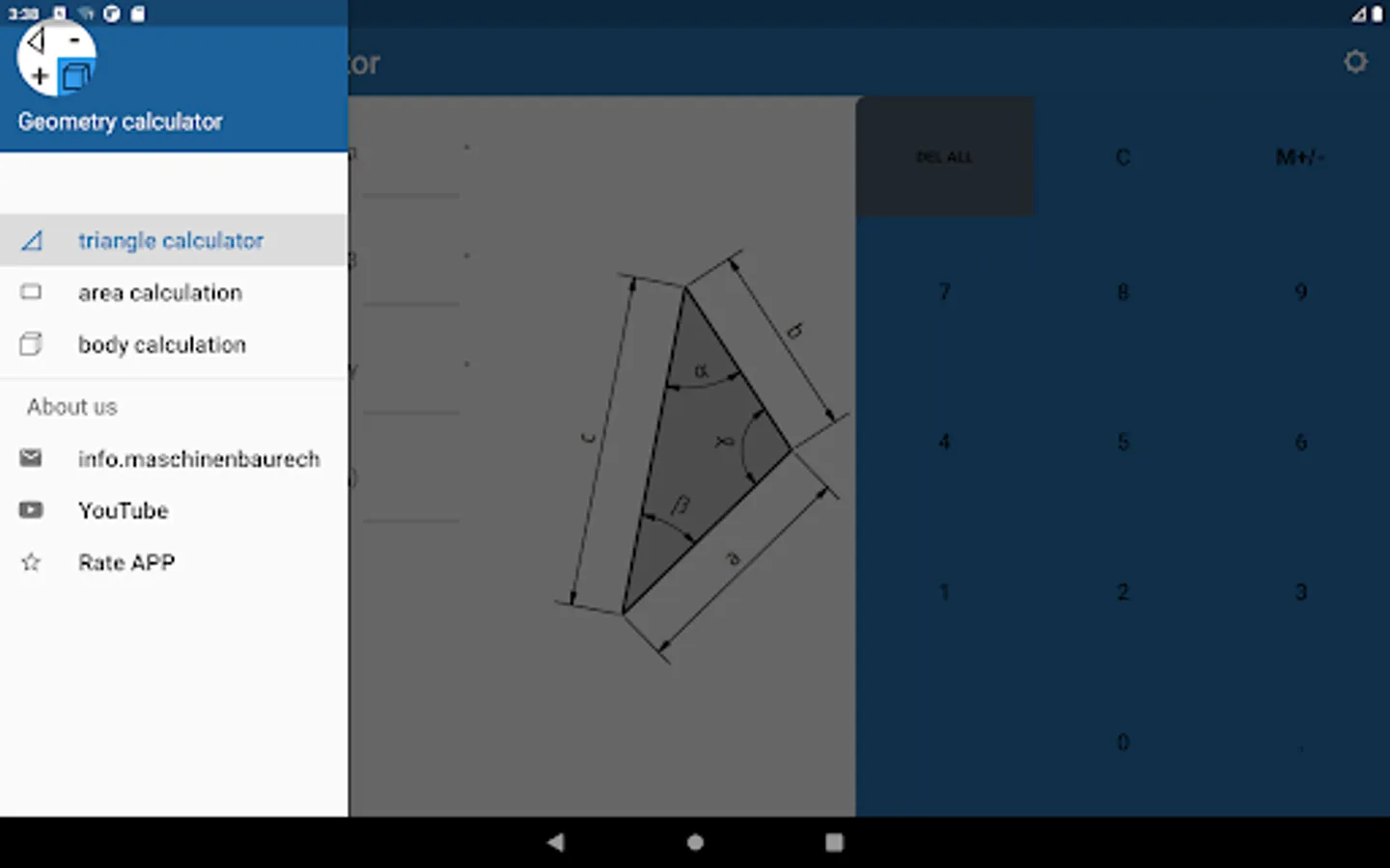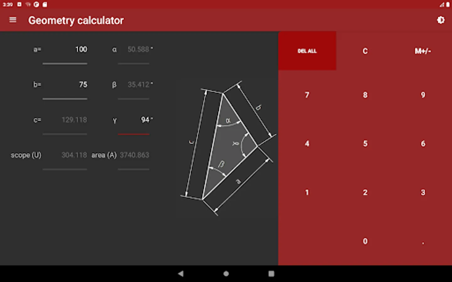 Easy and fast calculation of triangles, areas and objects. Determine angles without complicated formulas and without tediously using the sine theorem or cosine theorem. Calculate dimensions for complicated geometries such as trapezoids, circular sections, etc.
