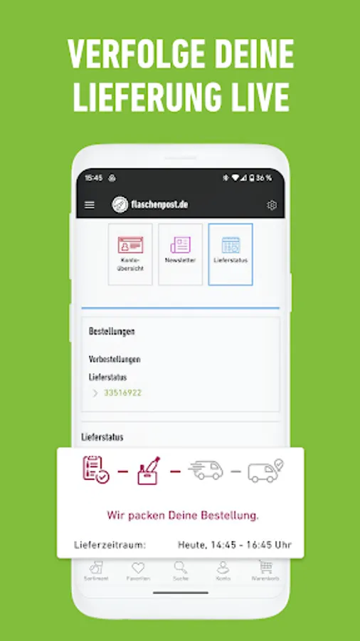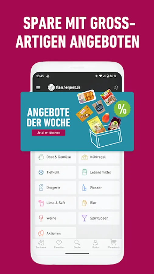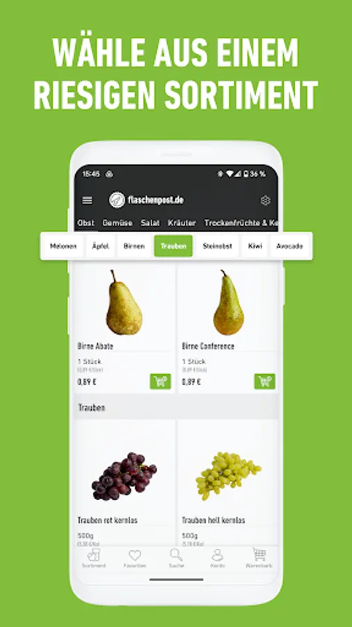 Order your weekly shopping quickly and conveniently now! Whether fresh meat 🍗, organic fruit 🍎, regional baked goods 🥐, frozen pizza 🍕, beverage crates 🍻 or more - have your desired products delivered to your home within just 120 minutes. Our bonus: We'll take your empties back with us! 😍