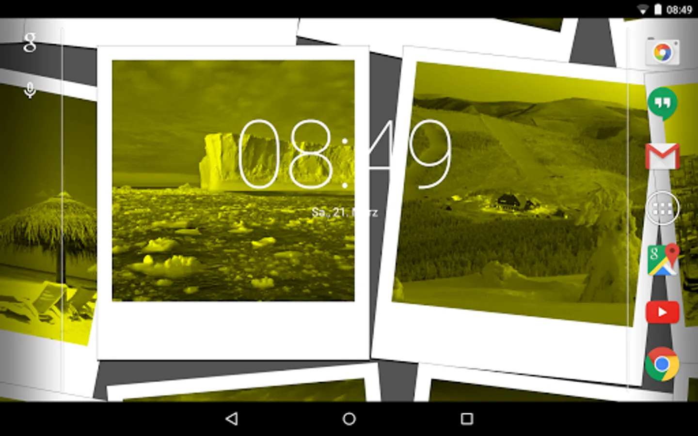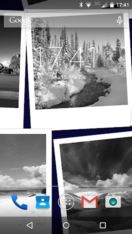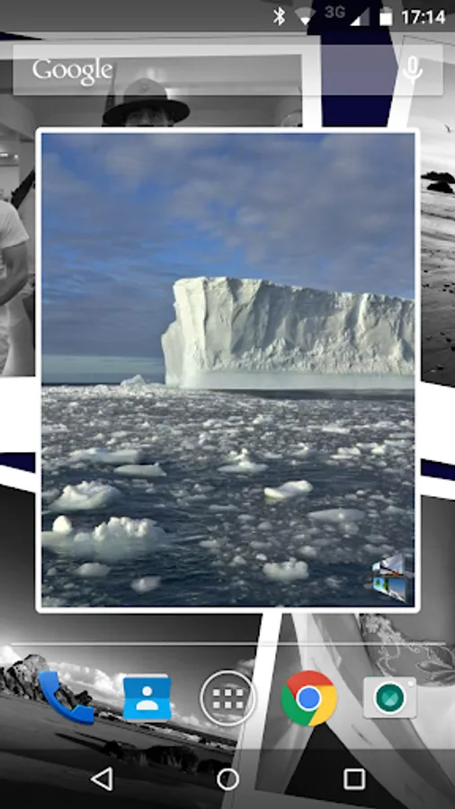 This application creates a photo wall that floats on your home screen. Use the camera, WhatsApp or other pictures for your personal photo wall. Also a special widget is available.