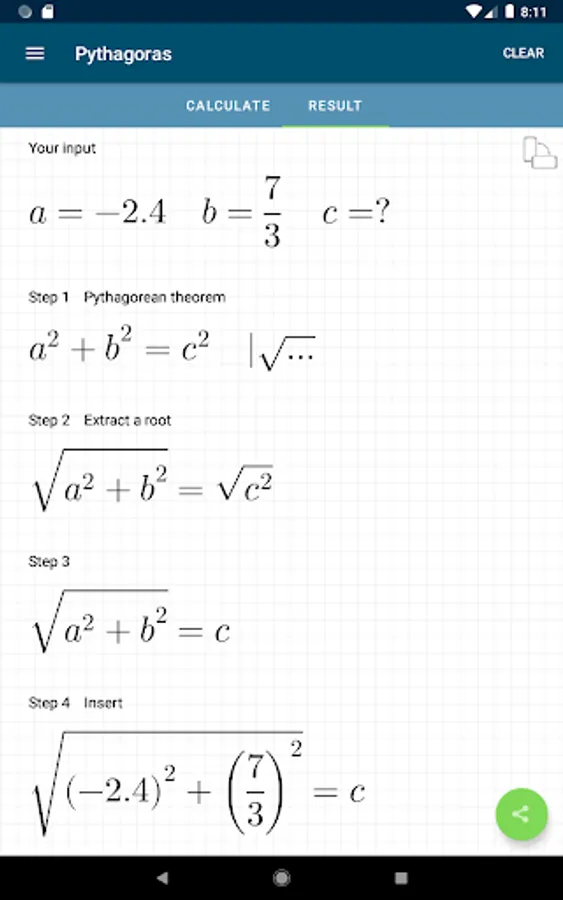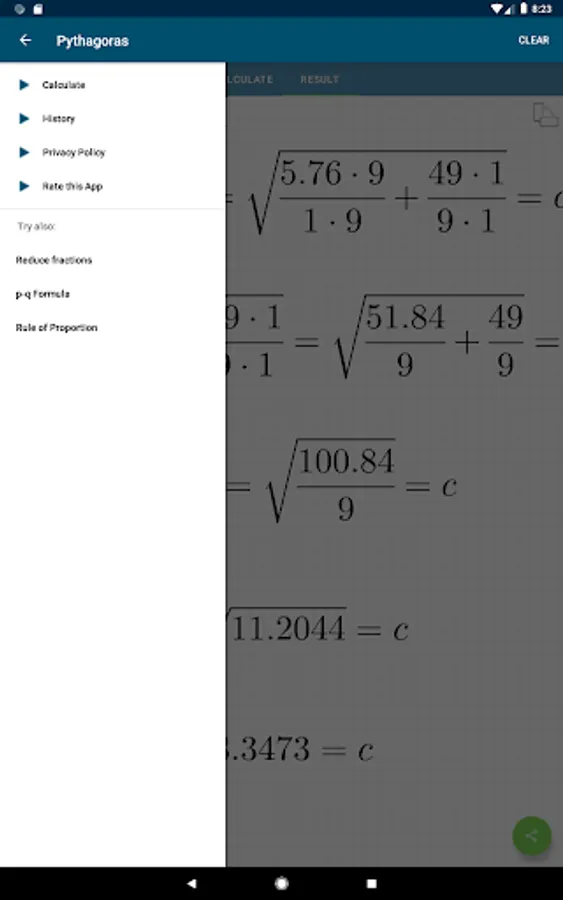 The calculation of a right-angled triangle is no longer a problem. All edges are calculated with the Pythagorean theorem. If you enter the value of two edges, the third is calculated. All calculations are stored in a history. The final solution can be shared.