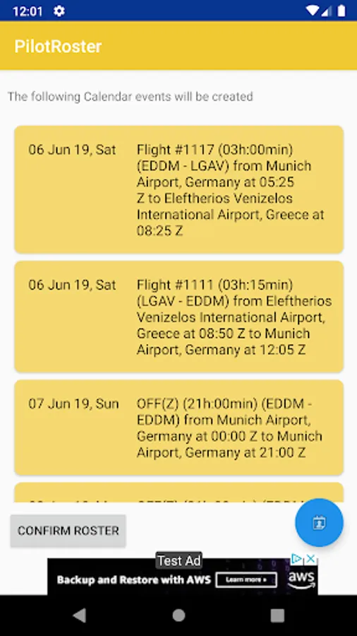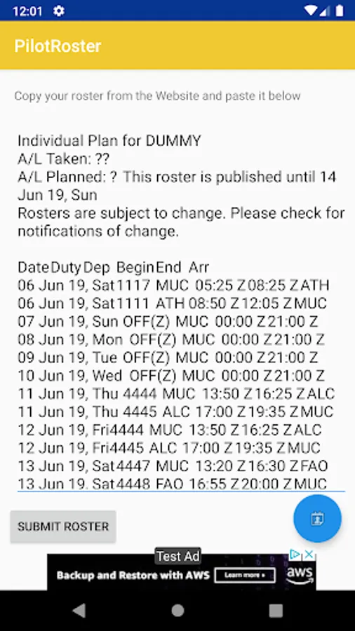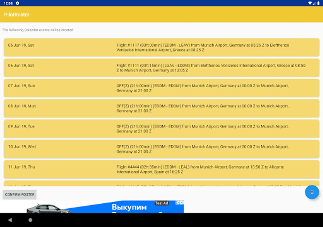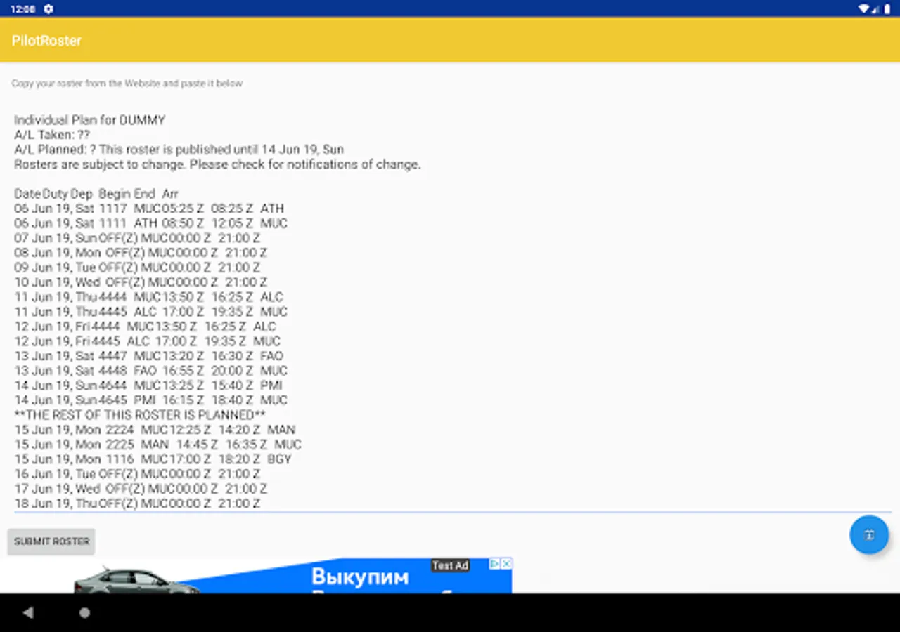 The app currently only supports the rosters of Ryanair. However, you can test the app with an example roster via the menu.