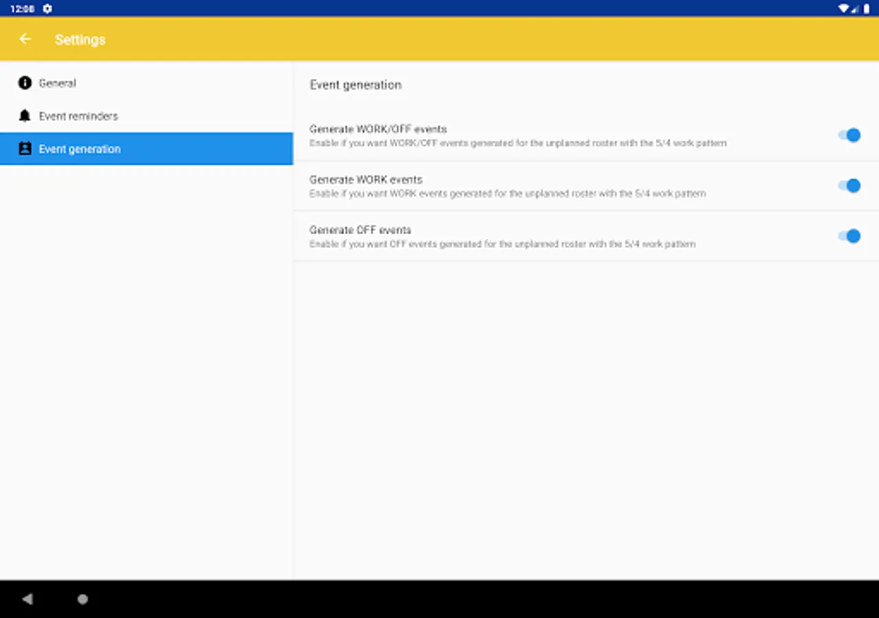 In addition to calendar entries from the copied roster, wildcard calendar entries for Ryanair's 5/4 work patterns can also be created.