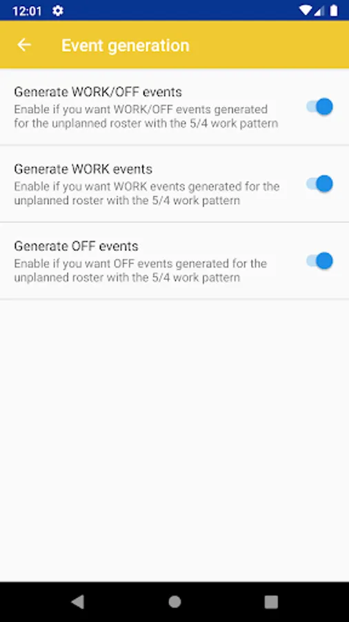 You can also choose whether or not to create the wildcard calendar entries for Ryanair's 5/4 work pattern or whether to create only the work days or off days entries.
