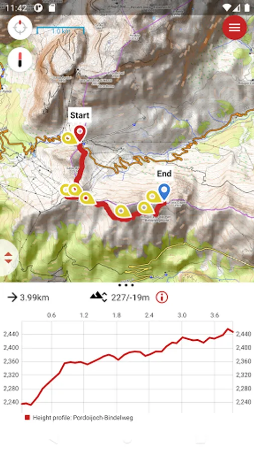 - Recorder function to find the right way without a preloaded route and to save the completed track for later.