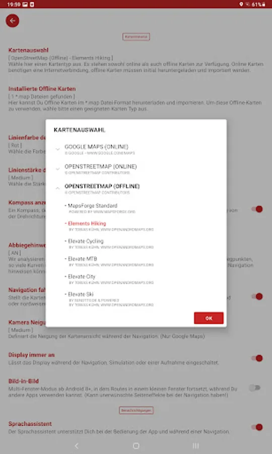 - Many useful features like altitude profile, auto gpx interpretation, individual display settings, landscape and portrait mode, picture in picture navigation, geocaching, dark mode and much more…