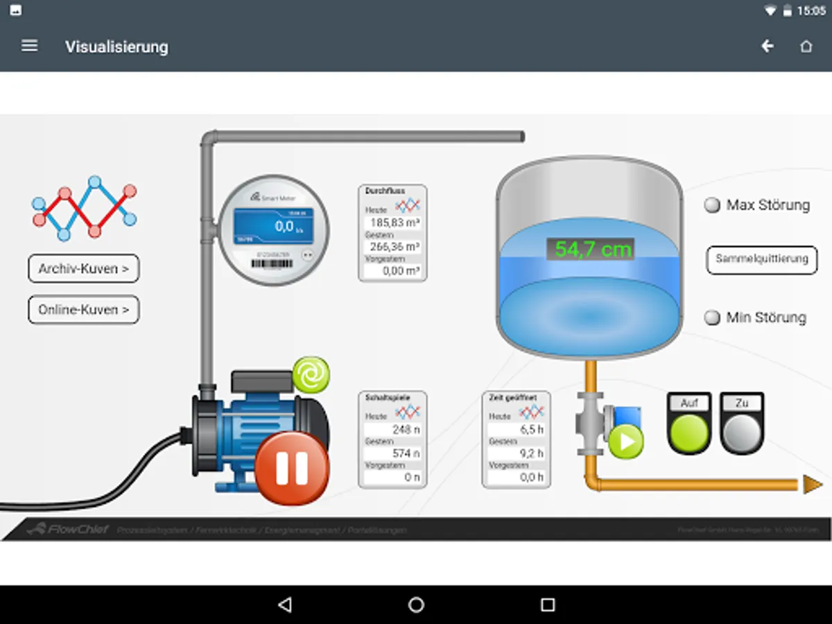 FlowChief scadaApp enables you to easily and reliably access your FlowChief portal, SCADA or process control system with mobile operating devices. The app includes a demo application and can therefore be easily tested.