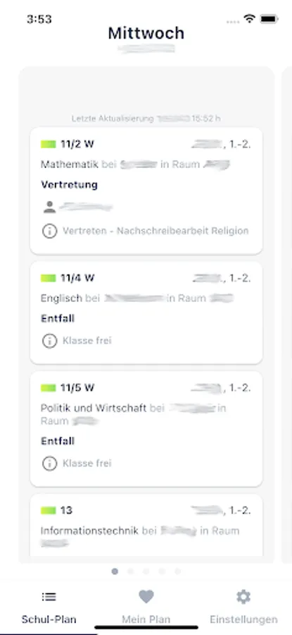 In addition to the substitution plan data, it is now also possible to put together a timetable or courses that are attended. The regular hours that do not contain any substitutions are also displayed here.