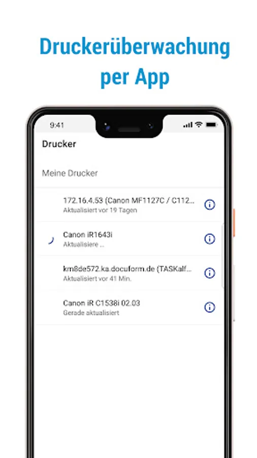 The app updates the printer data on the MPS server automatically and in the background if the smartphone is in the same network.